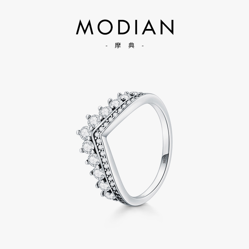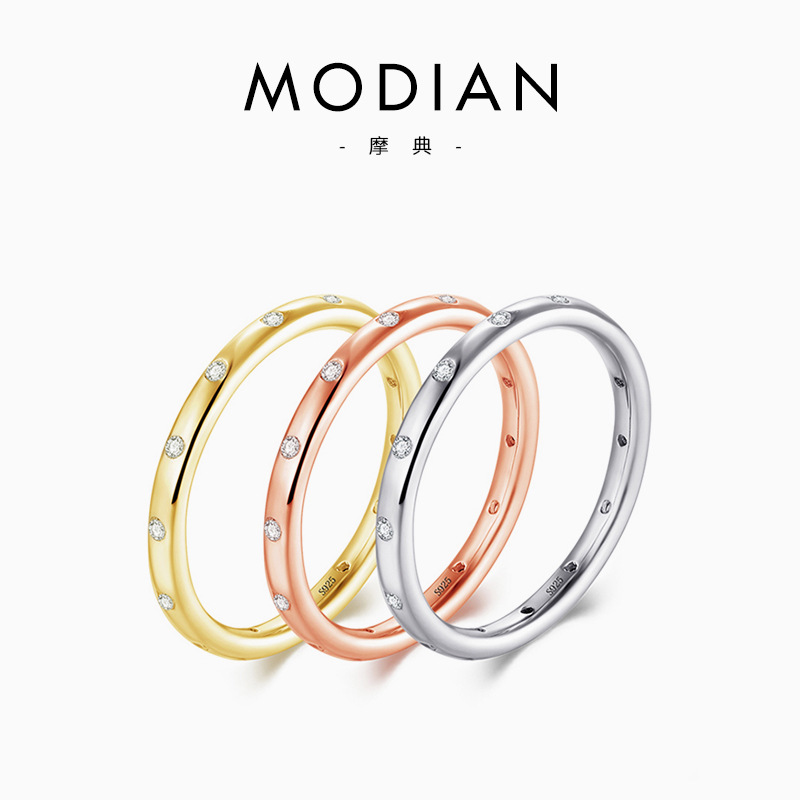 MODIAN摩典D色莫桑ドリルs 925純銀日韓贅沢気質超フラッシュドリル指輪食指戒女