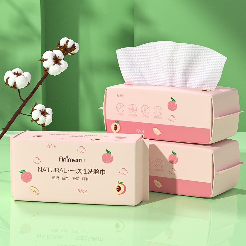 使い捨ての洗顔タオルに厚い綿の柔らかいタオルを入れて、式の洗顔タオルを引き出します。