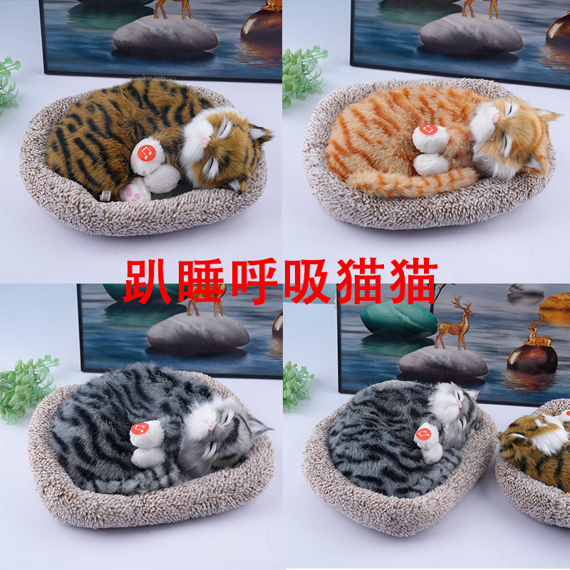 电动毛绒玩具仿真动物猫会叫会呼吸儿童玩具玩偶仿真猫咪居家摆件