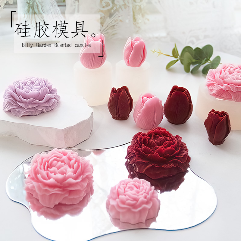 大輪牡丹花薔薇チューリップ花diy香薫石膏ろうそくケーキ手作り石けんシリコン金型