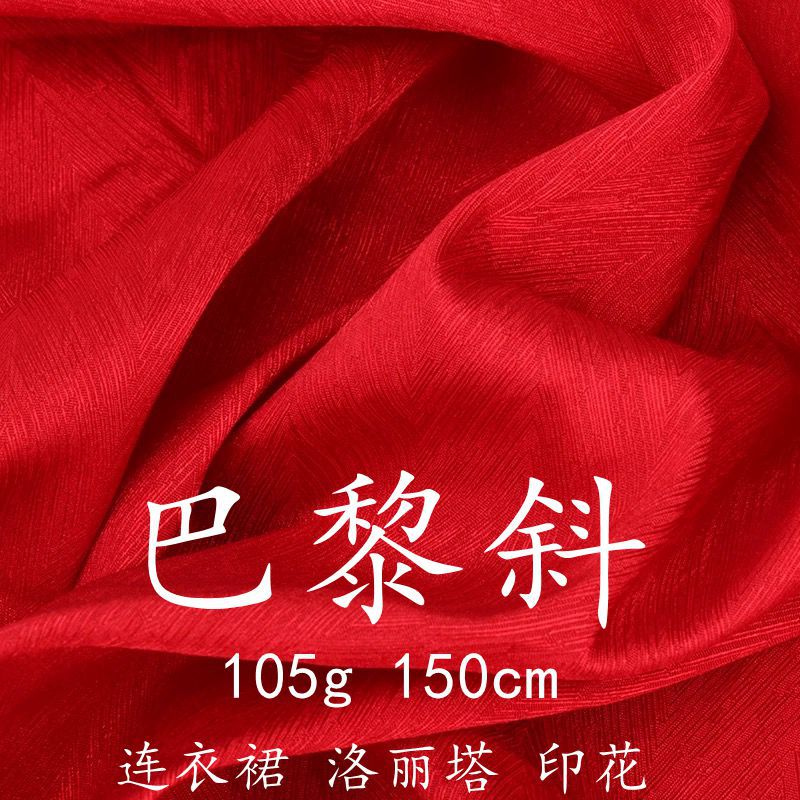 巴黎斜人字斜暗纹提花面料弹力汉服洛丽塔绸缎布料色丁印花布料