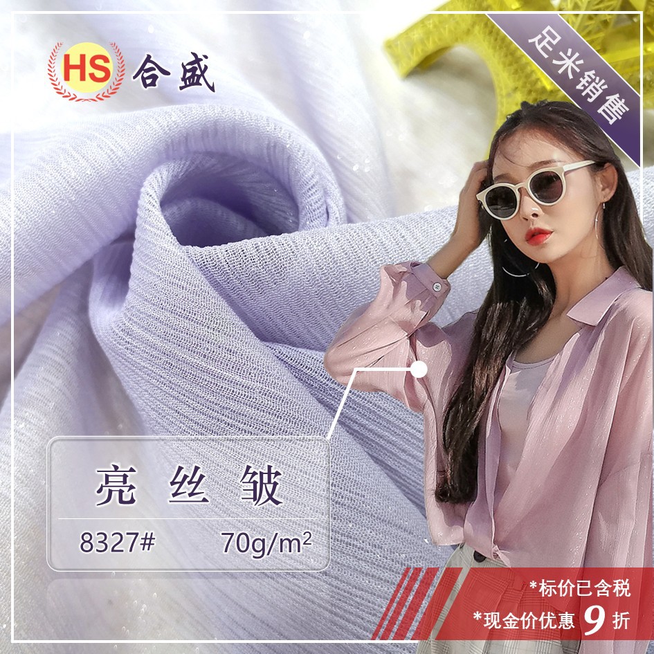 ブライトシルクしわ韓服スカートシャツロリータポリエステル生地グリッターシルバーシルククレープシフォン生地 8327