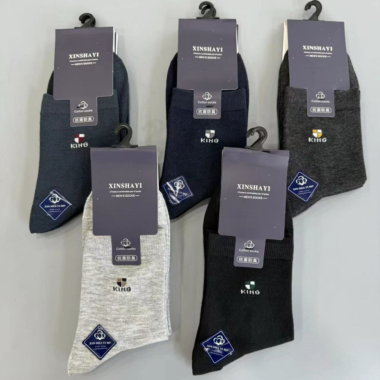 外国貿易日単無印男女良品秋冬精練綿双針男女白黒グレーカラー男女双針綿靴下