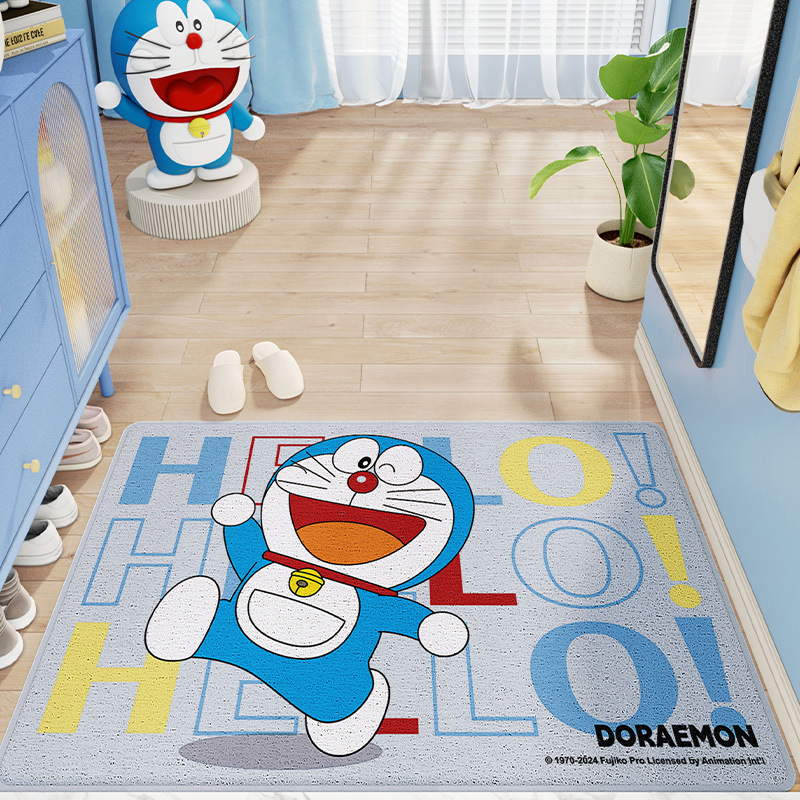 正版哆啦A梦丝圈PVC刮沙除尘脚垫卡通地垫入户门耐脏易打理防滑垫