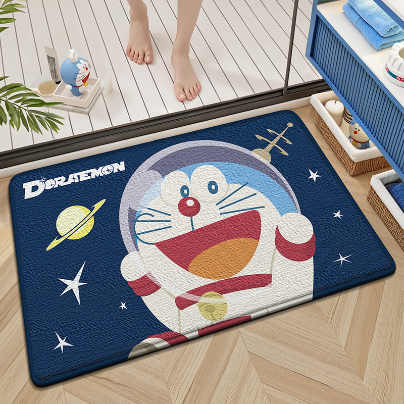 正版哆啦A梦法棉绒浴室加厚海绵地垫家居卫生间速干强吸水脚垫