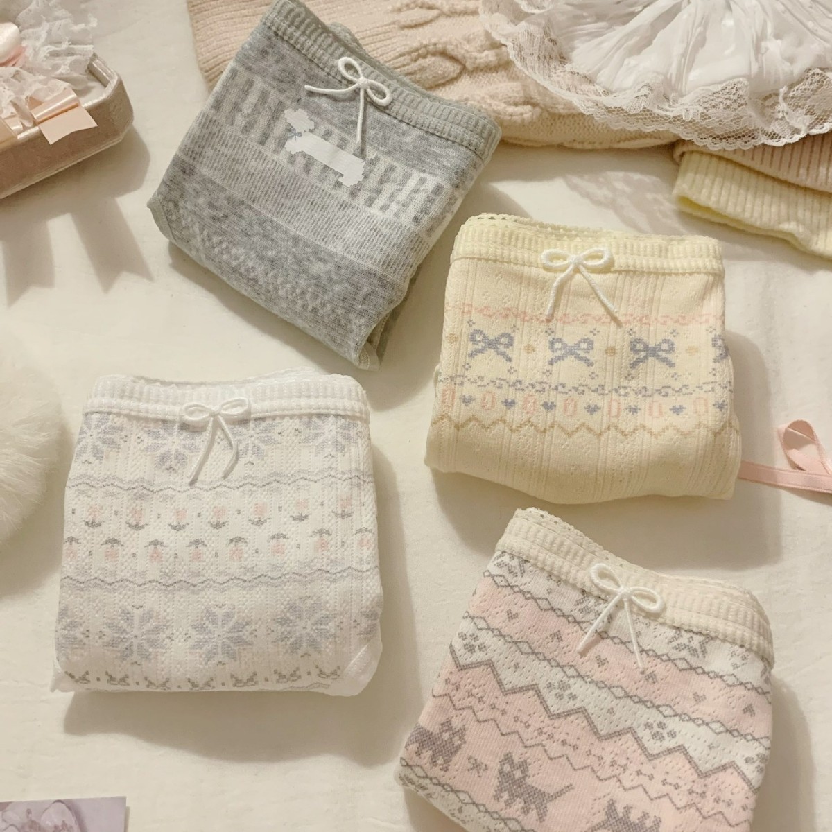 日本系ホワイト盗心ロリメイドパンツ中腰モデル綿通気綿股かわいいヒップアップ三角パンツ