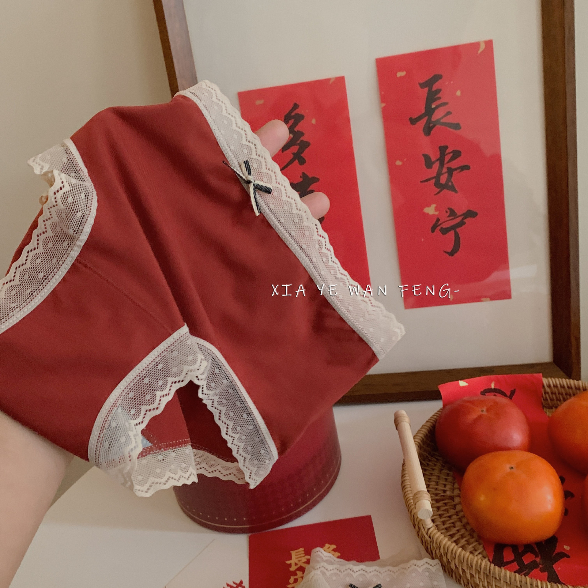 日本系秋冬兎年本命紅下着女性低腰モーダルレッド新年結婚通気綿股三角ズボン