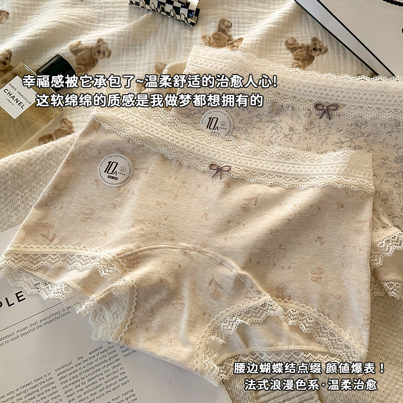 "按键回到幸福瞬间"【微甜小调】10A抑菌女生内裤女士纯棉三角裤