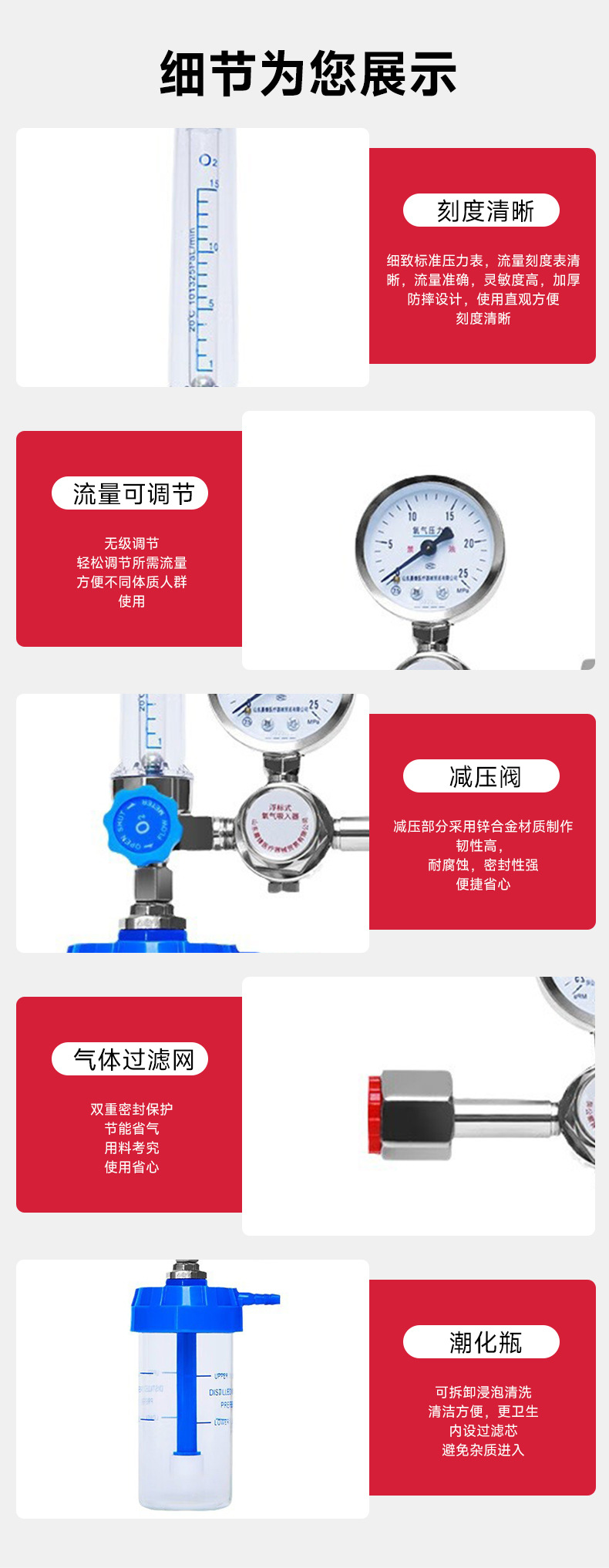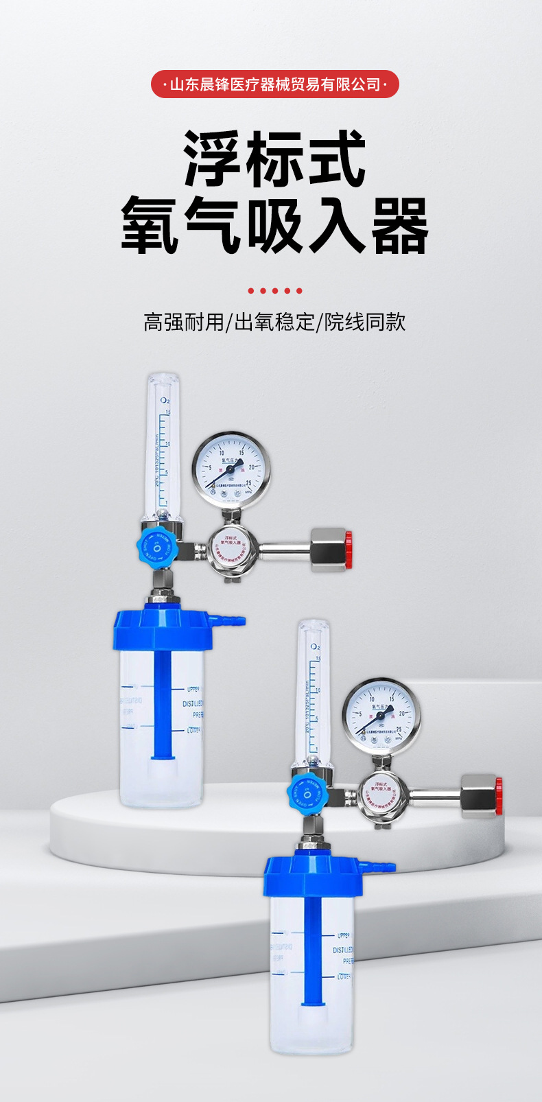 厂家供应医用氧气吸入器 浮标式减压器 湿化瓶吸氧流量表山东晨锋