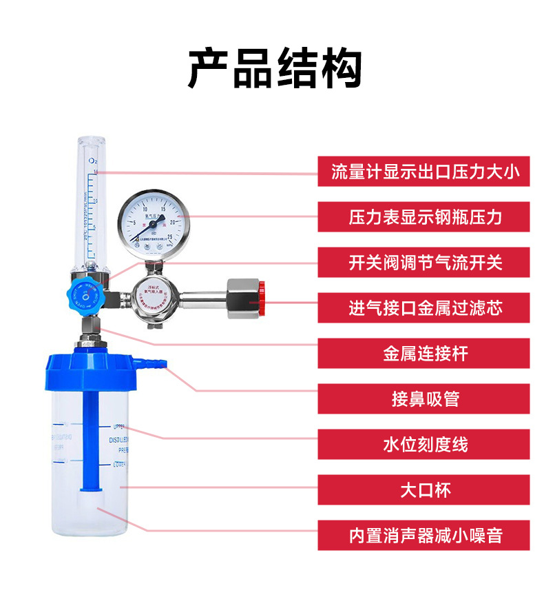 锦燕医用家用浮标式氧气吸入器氧气流量表氧气瓶压力表氧气减压阀