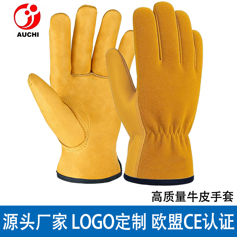 国境を越えた屋外サイクリンググローブ黄色牛革耐摩耗性と耐穿刺園芸ハンドリング作業労働保護溶接機