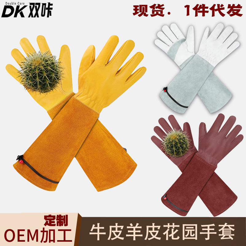 沸騰牛革長筒園芸手袋種菜種花生け花剪定牛二層クロスボーダー防護園林手袋