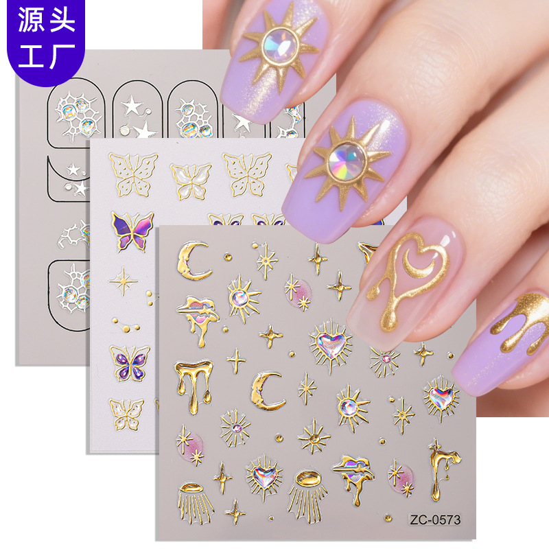 正祥跨境新款DIY美甲贴纸烫金仿钻3D彩钻美甲饰品贴花INS风指甲贴
