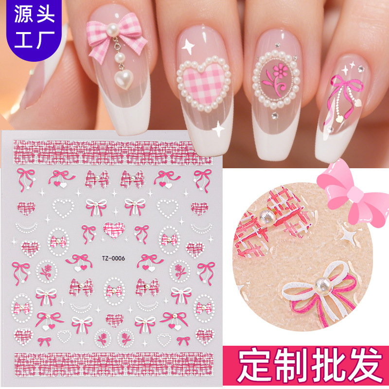 正祥网红爆款爱心蝴蝶结美甲贴纸DIY亚克力珍珠钻ins风贴花指甲贴