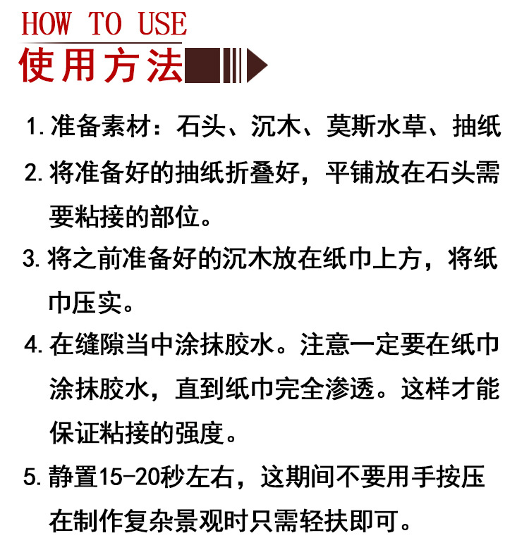 【2】骨架胶:用于 石头与石头、沉木与沉木、石头与沉木(需水外操作)