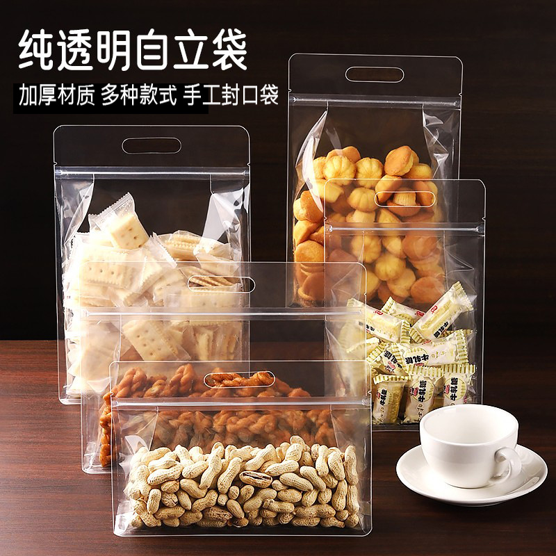透明八边封自立袋零食饼干薯片透明塑料手提吐司面包自封包装袋