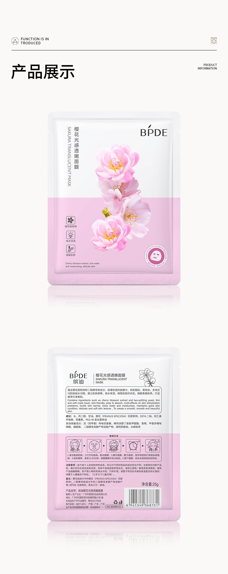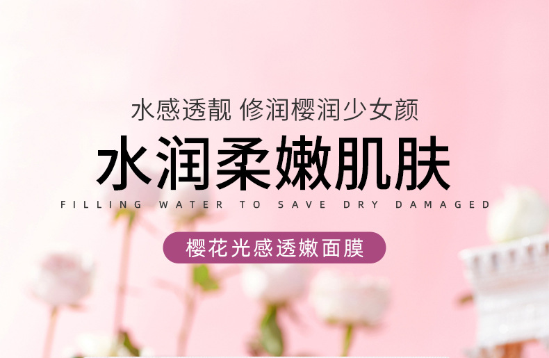 カラフルな桜の光感が柔らかいマスクを入れて潤いを与え、保湿し、肌に潤いを与えます。