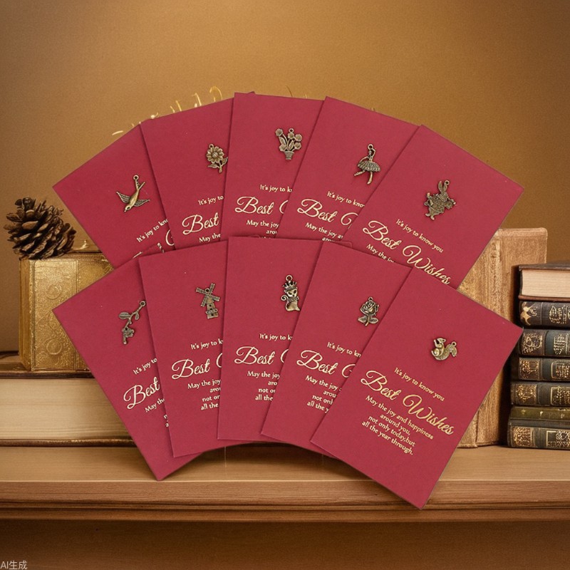 ワインレッド復古箔押し創意誕生日カード感謝クリスマス新年ビジネス客先グリーティングカード