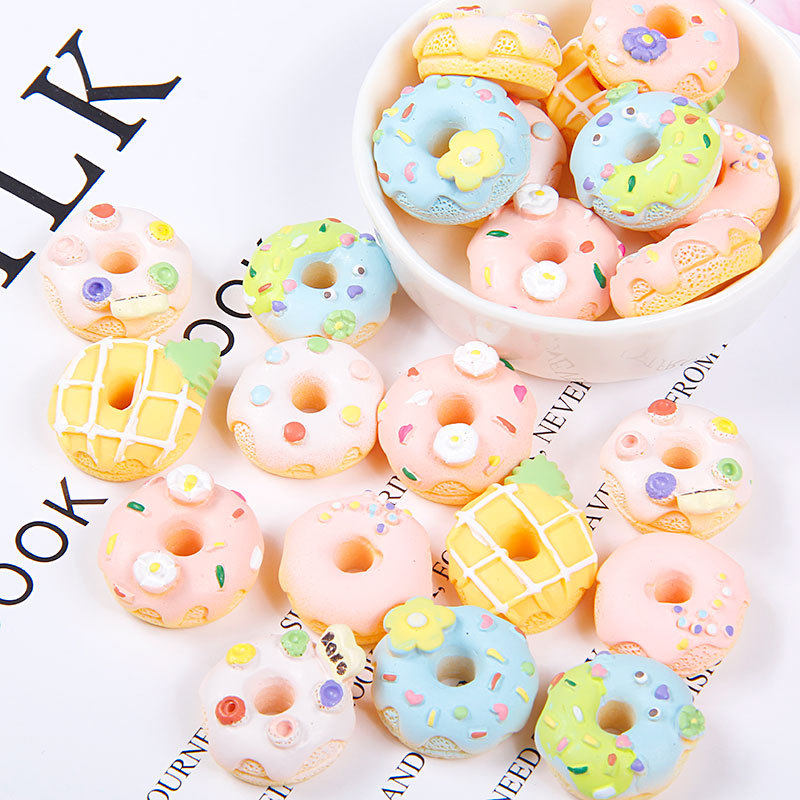 樹脂癒し色ドーナツ食游部品卸売りdiyクリーム携帯ケース材料児童髪飾り