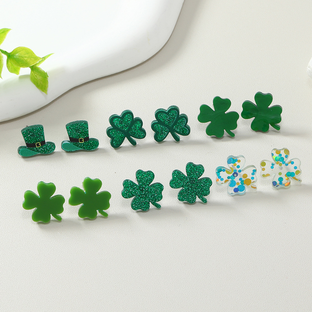 セントパーカー祭り革イヤリンググリッターポイントグリーン花帽子レザーピアスおしゃれ耳飾りプレゼント3点セット