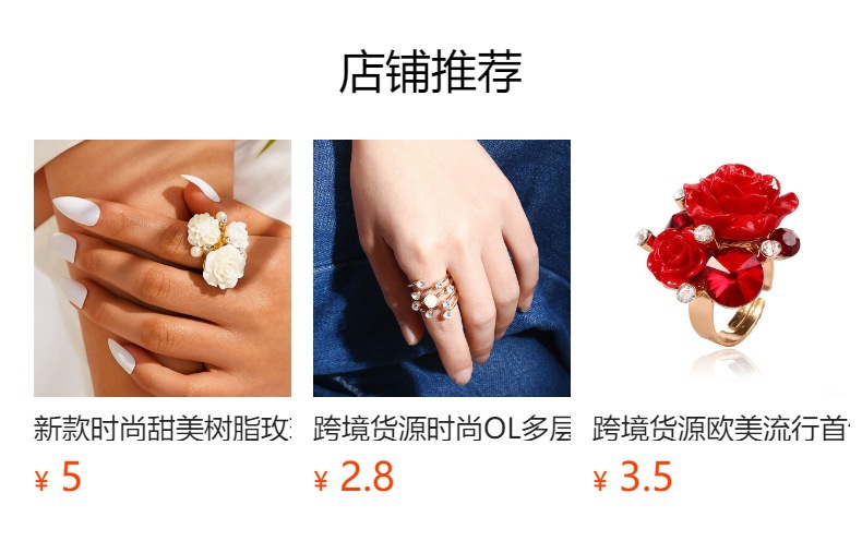 韓国風・日本風ファッションの定番人気商品、小清新なバラの樹脂製フラワーオープンリング