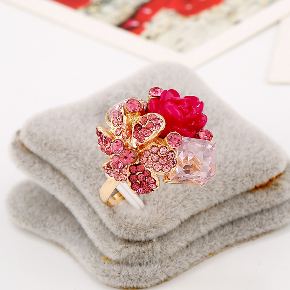 ヨーロッパとアメリカのジュエリー、カラフルなクリスタルジェムストーンオープンリング、パーソナライズされたファッショナブルな樹脂フラワーリング
