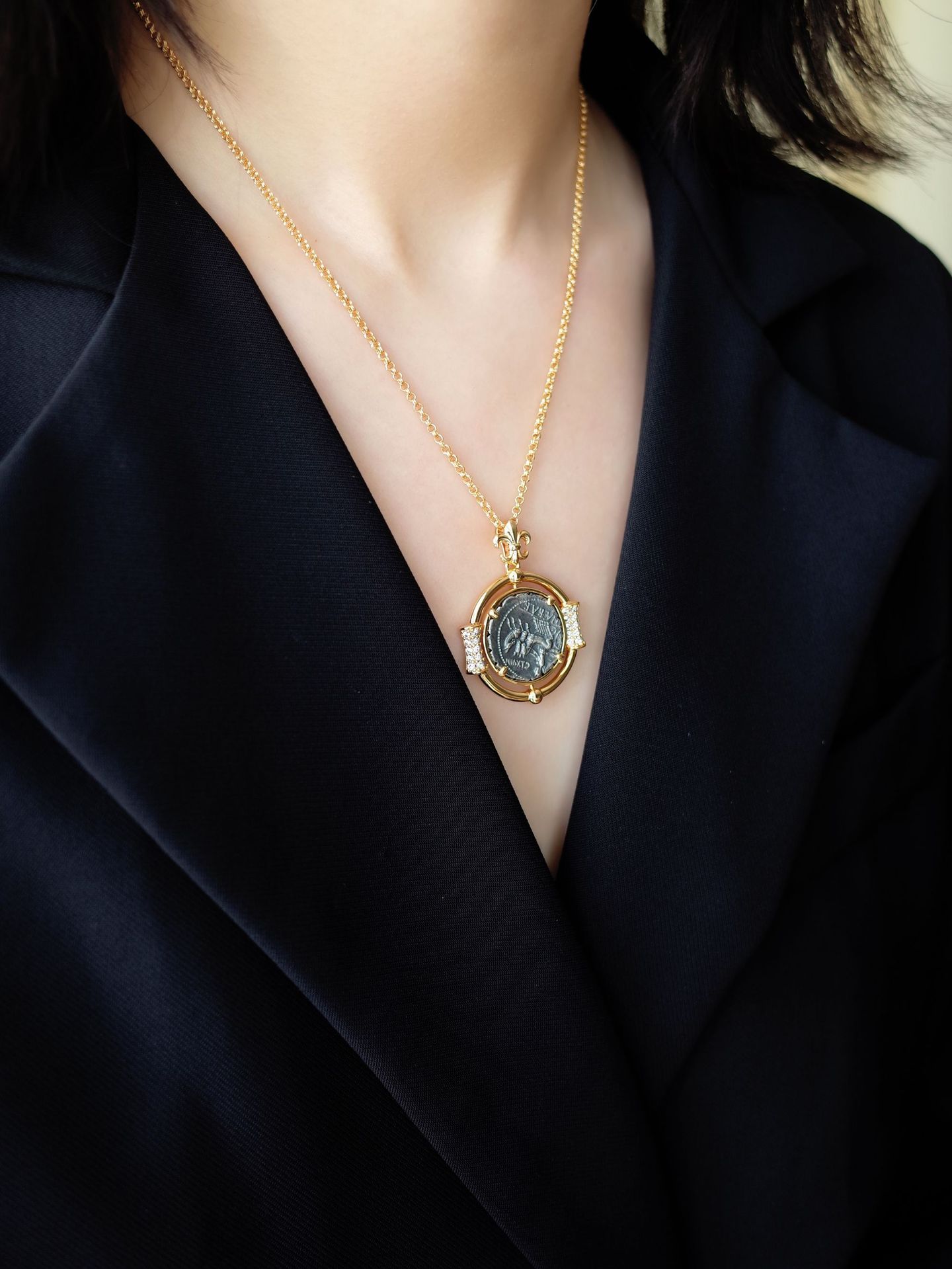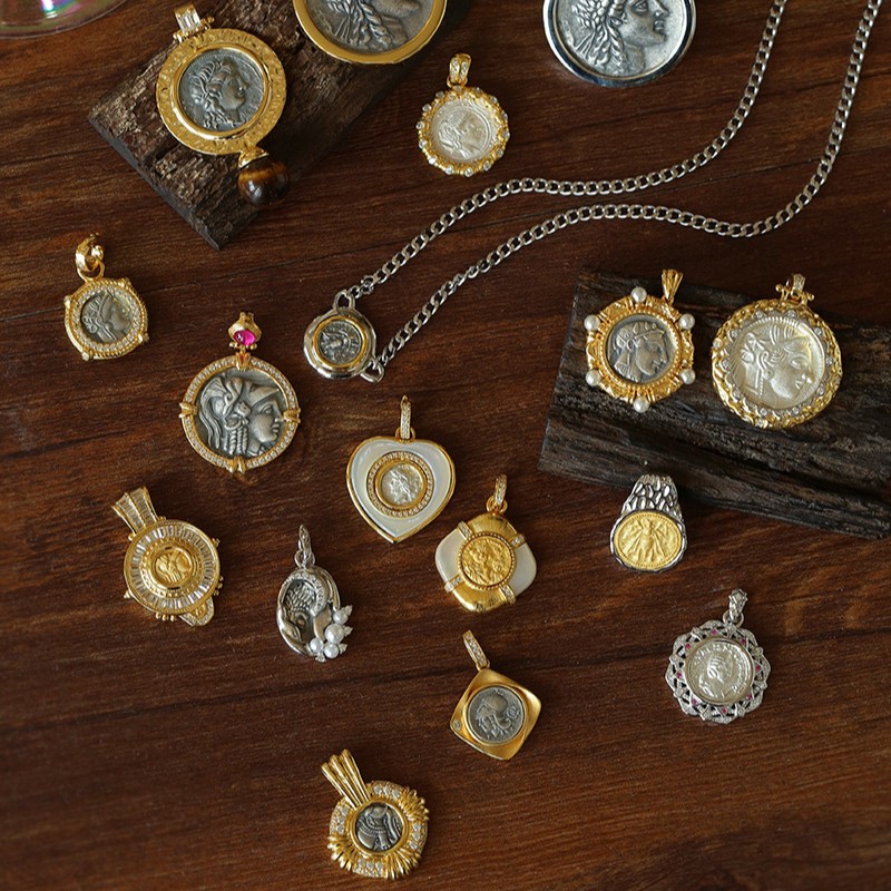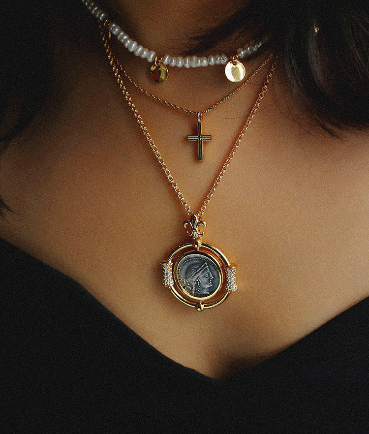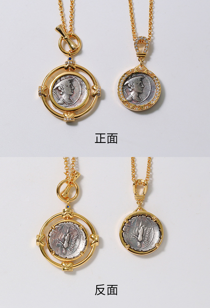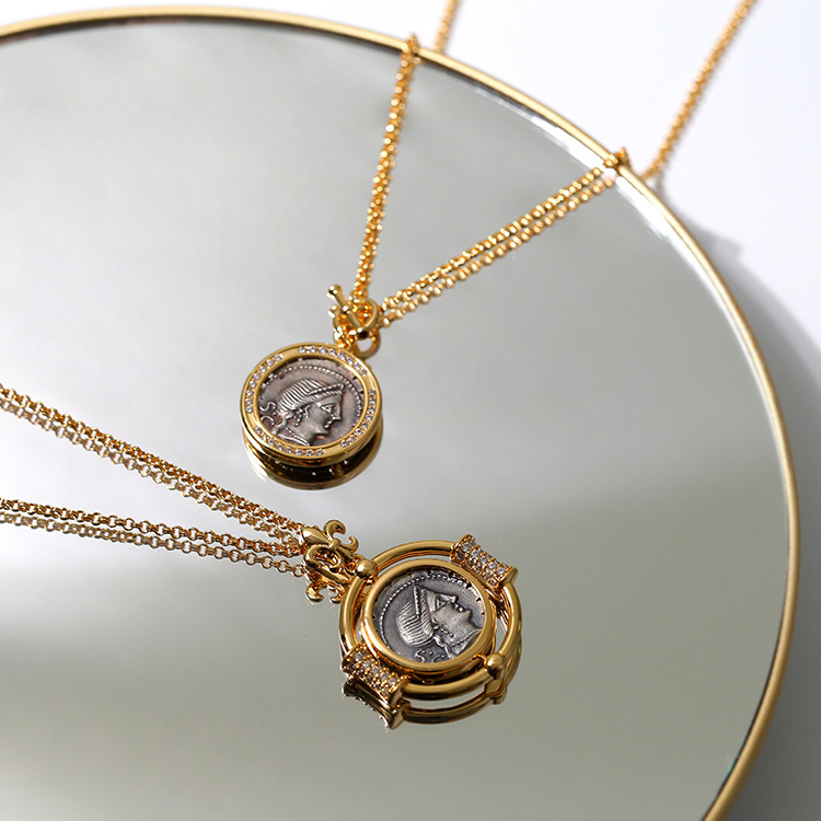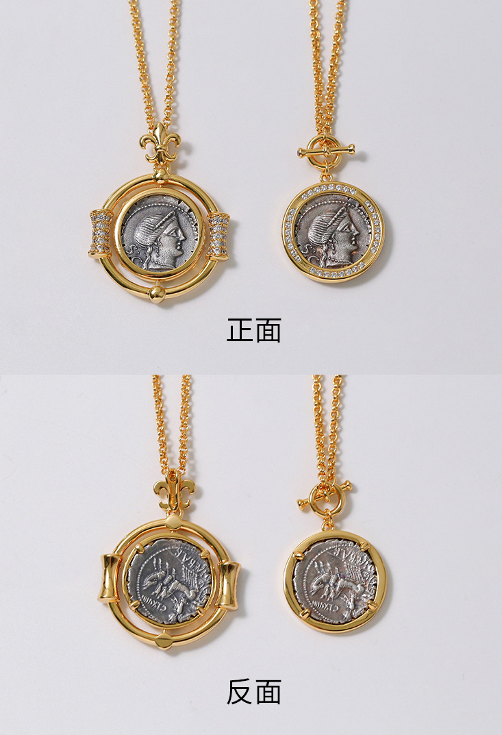 レトロなオリジナルネックレス古代ローマの幸運の女神は古貨のネックレスをまねて硬貨のヴィンテージのネックレスを復刻して卸売りします。