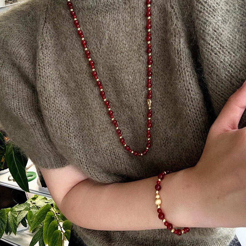 新中式葫芦玛瑙串珠长款项链手链女国风气质磨砂葫芦搭扣毛衣链
