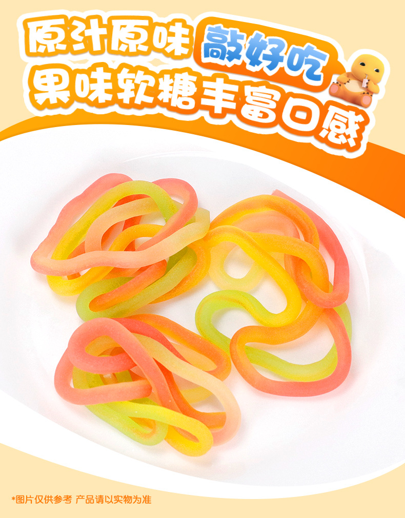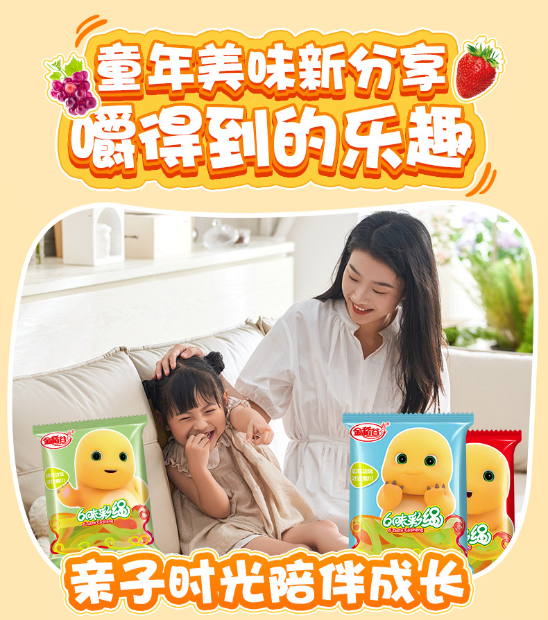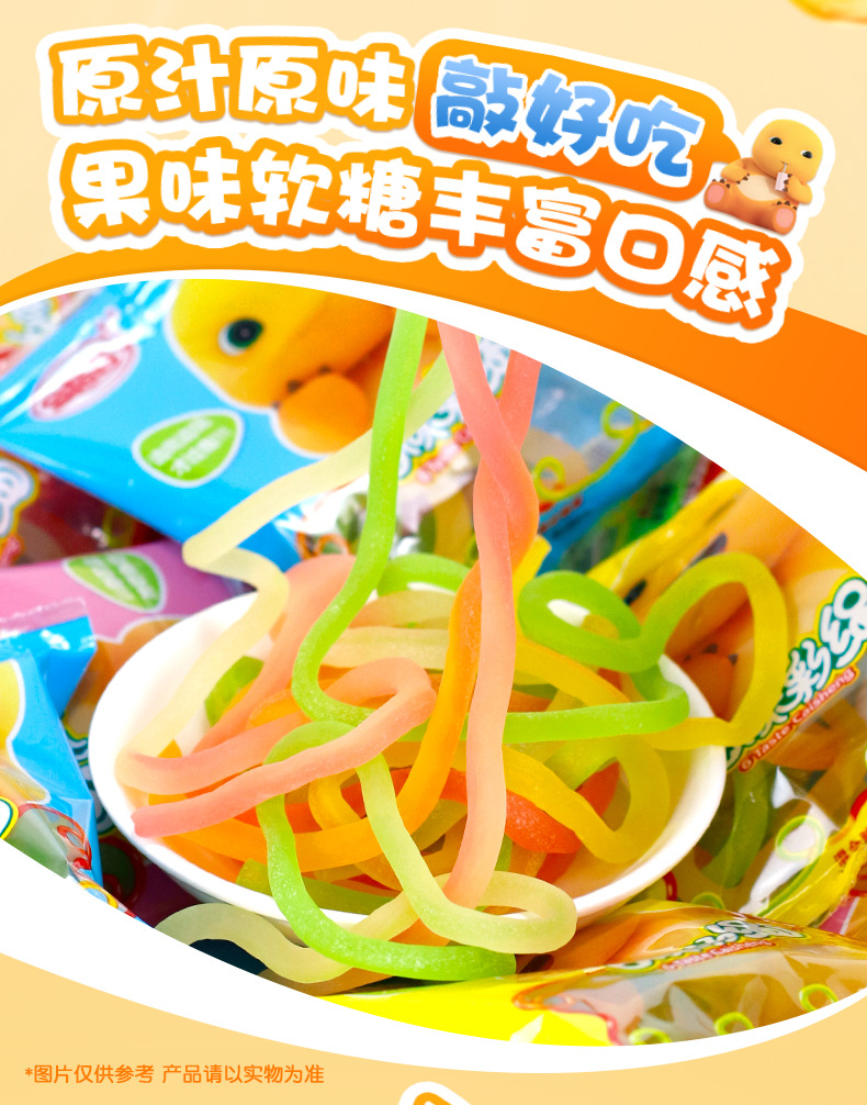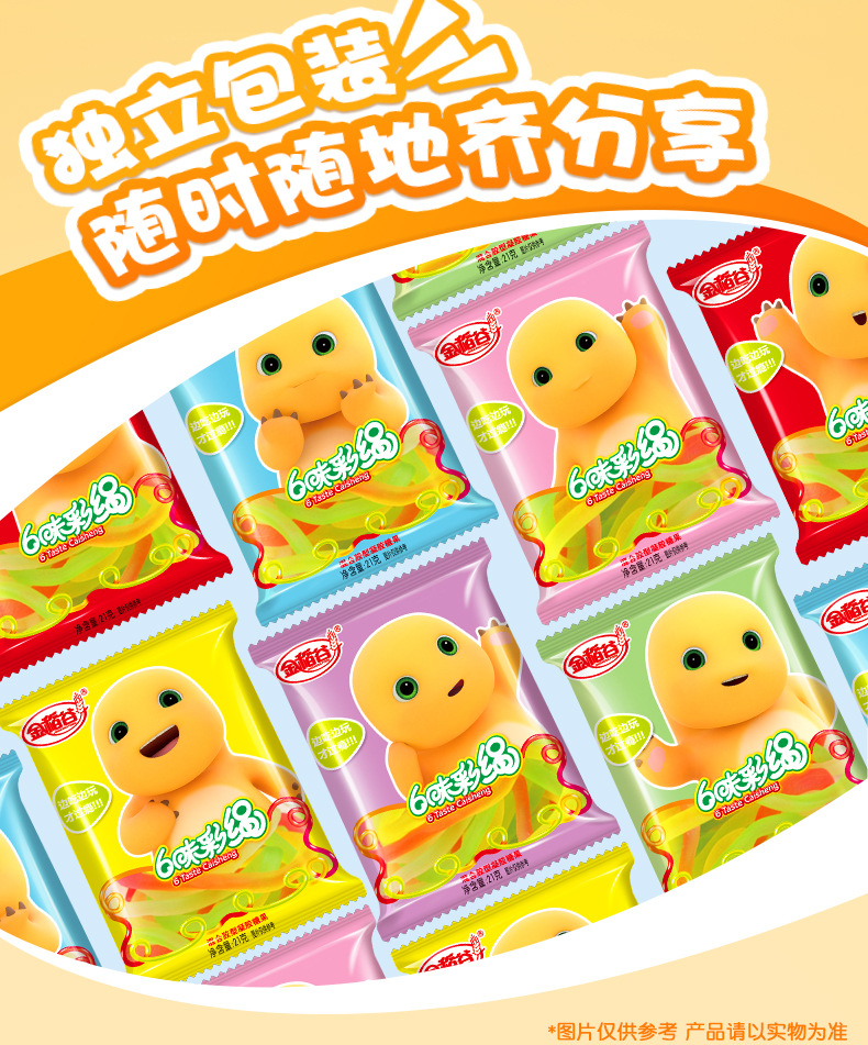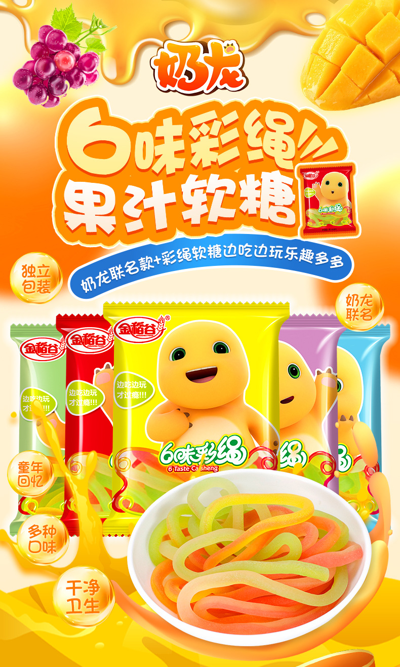 金稻谷21g6味カラフルロープジュースグミ、80年代、90年代の子供時代の思い出、懐かしいスナック、グミキャンディー、袋入り、卸売