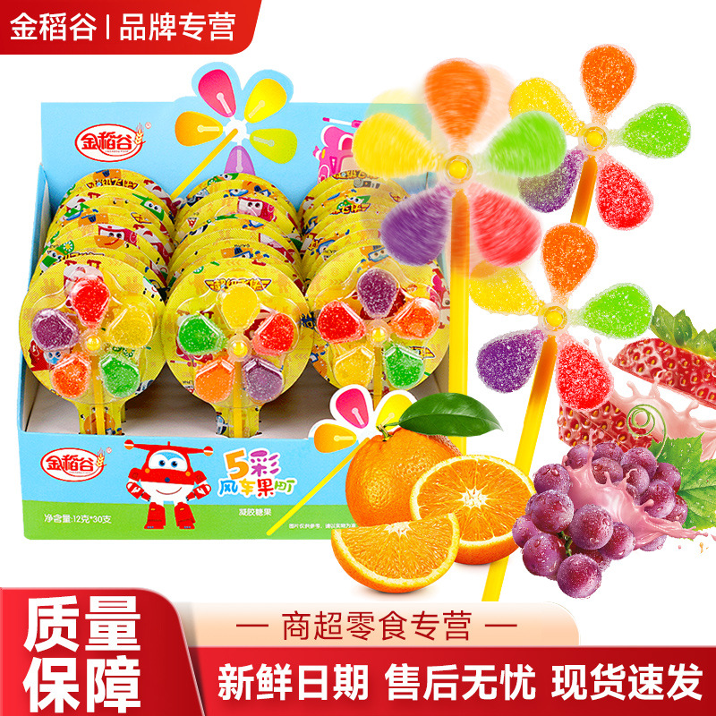 金稲谷12g五色風車グミ箱入りロリポップ学校スーパーマーケット卸売子供向けレジャースナックキャンディー