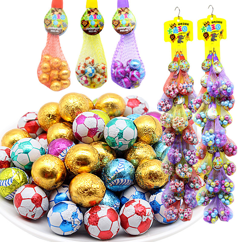 ネットポケットのチョコレートの子供の間食の喜糖のノスタルジックな間食のサンドイッチの硬い砂糖の掛け板のサッカーのチョコレートのスーパーは卸売りします。