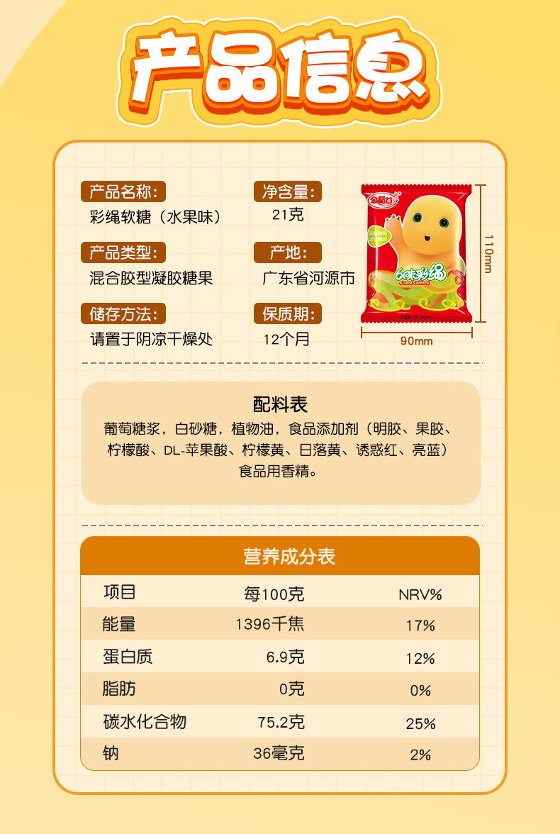 パッケージ仕様 21g * 30パック/袋-彩縄ソフトキャンディ