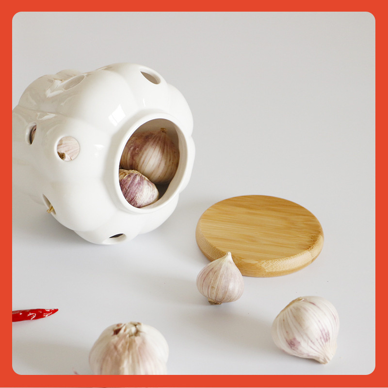 クロスボーダー透かし彫りセラミック貯蔵タンクニンニク生姜乾燥唐辛子収納ケースキッチン通風収納タンクカボチャ缶