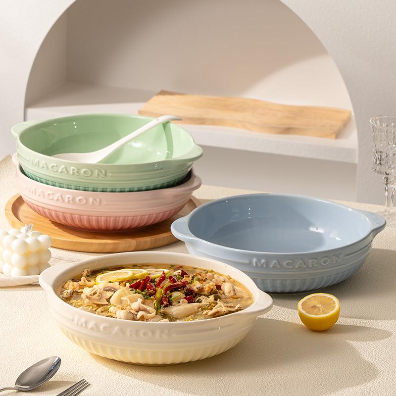 酸っぱい魚の大きい鉢の家庭用の大きいサイズの双耳のスープの碗の皿の12インチの陶磁器のスープの鉢の水煮の魚の専用の大きい碗