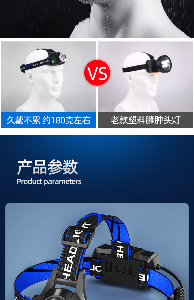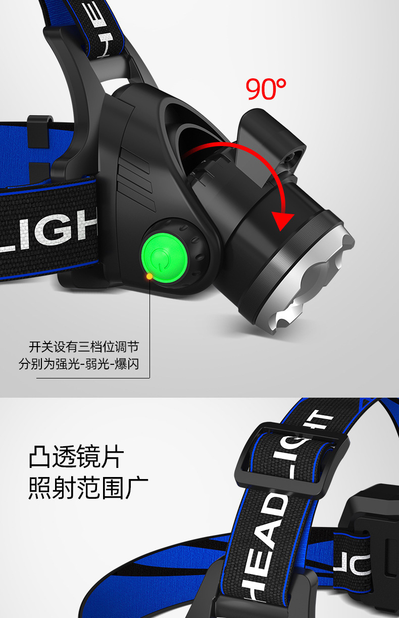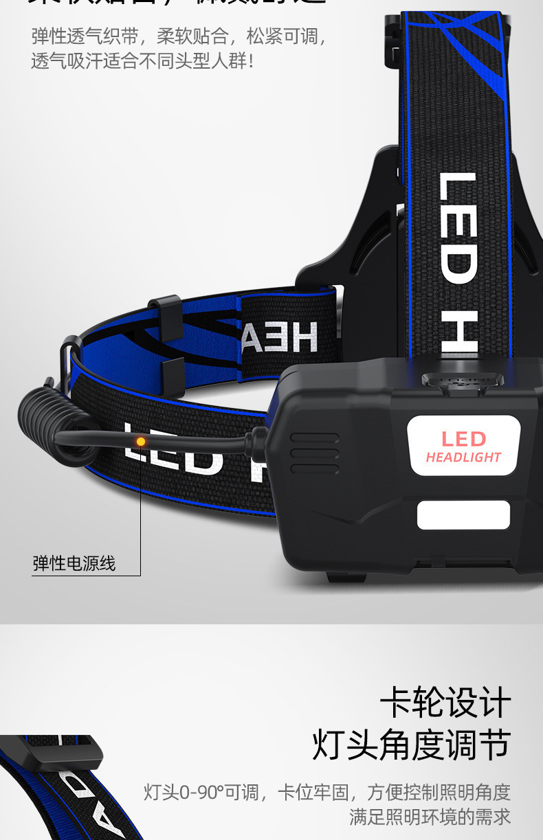 クロスボーダー強光ヘッドライト遠射充電可能防水超亮頭戴式夜釣灯鉱灯超長航続ヘッドライト