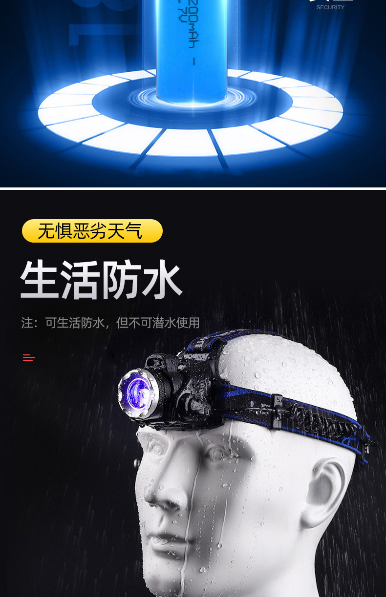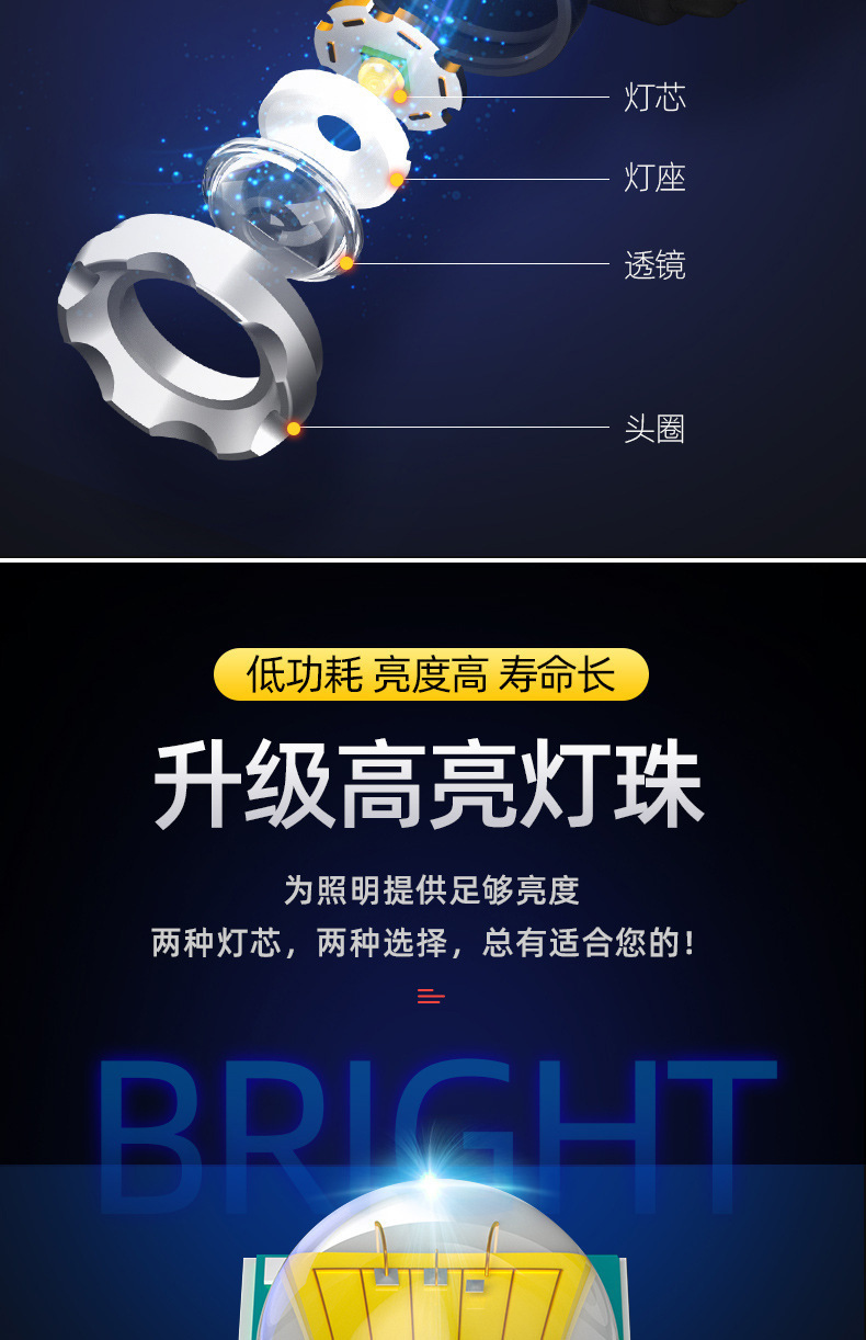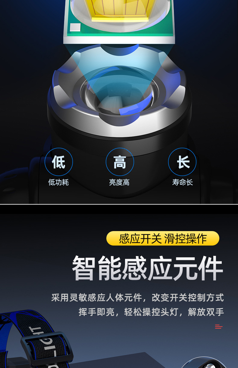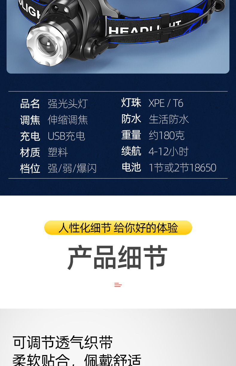 クロスボーダー強光ヘッドライト遠射充電可能防水超亮頭戴式夜釣灯鉱灯超長航続ヘッドライト