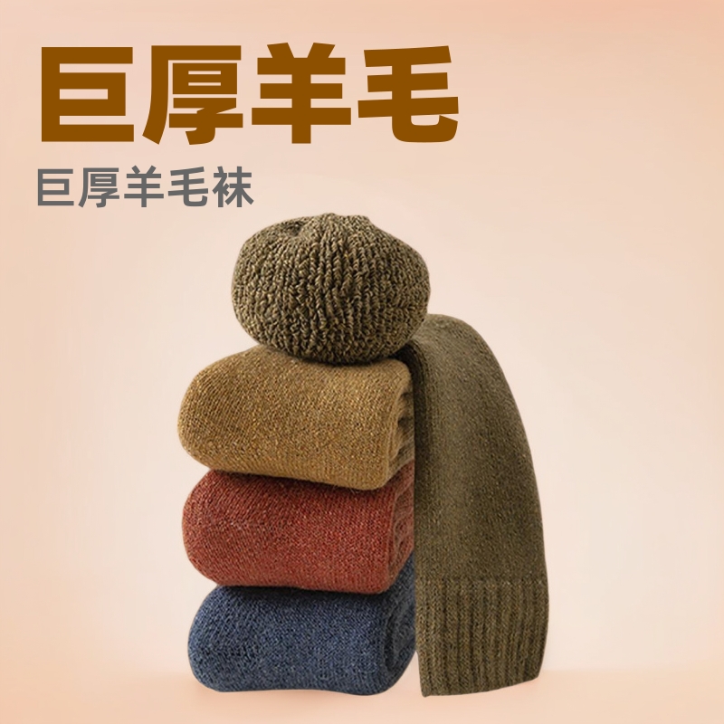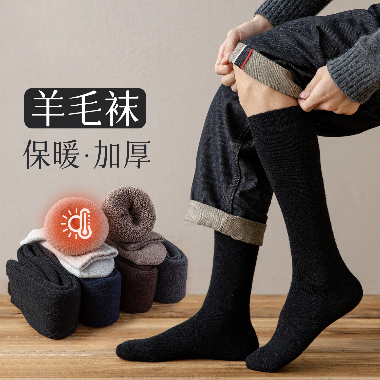 羊毛小腿袜秋冬男士高筒拉毛纯色保暖长筒冬季加厚毛圈袜加厚保暖