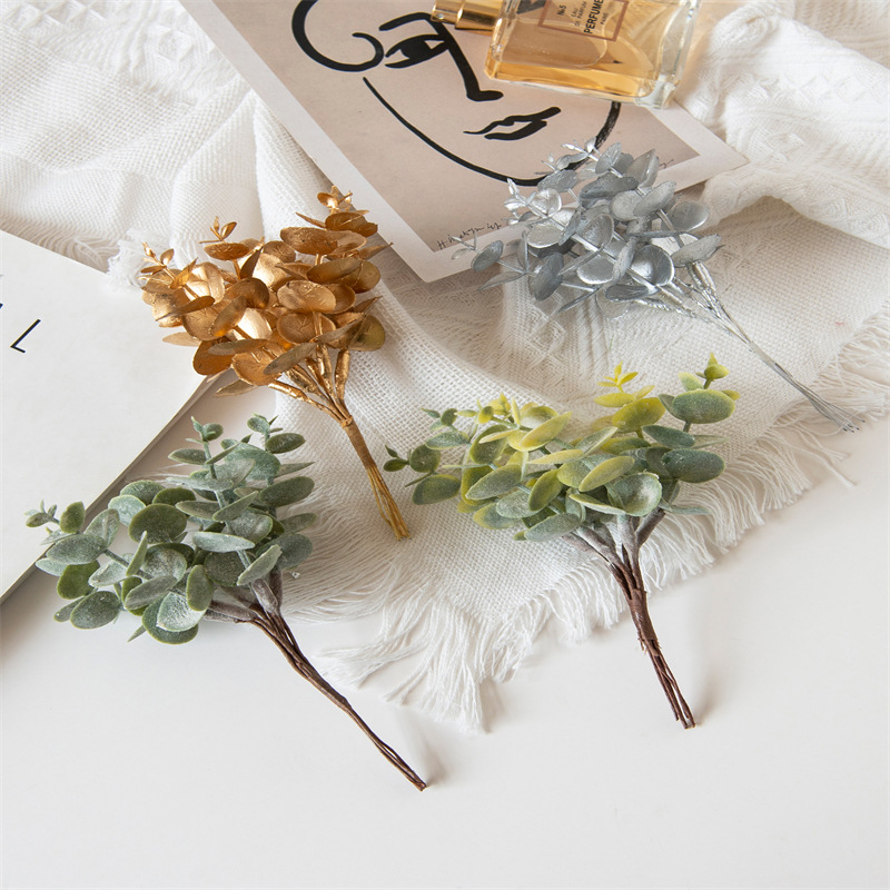 人造喷雾桉树叶人造绿叶尤加利桉树枝植物家居装饰仿真8叉绿植叶