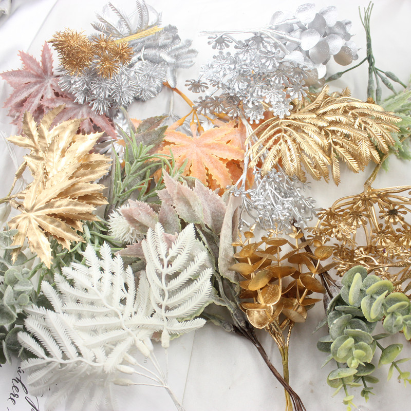 Diy金の葉は森系の手作りのアクセサリーの部品のプラスチックの草のザカの装飾の材料の花輪の胸の花の壁の花をシミュレーションします。