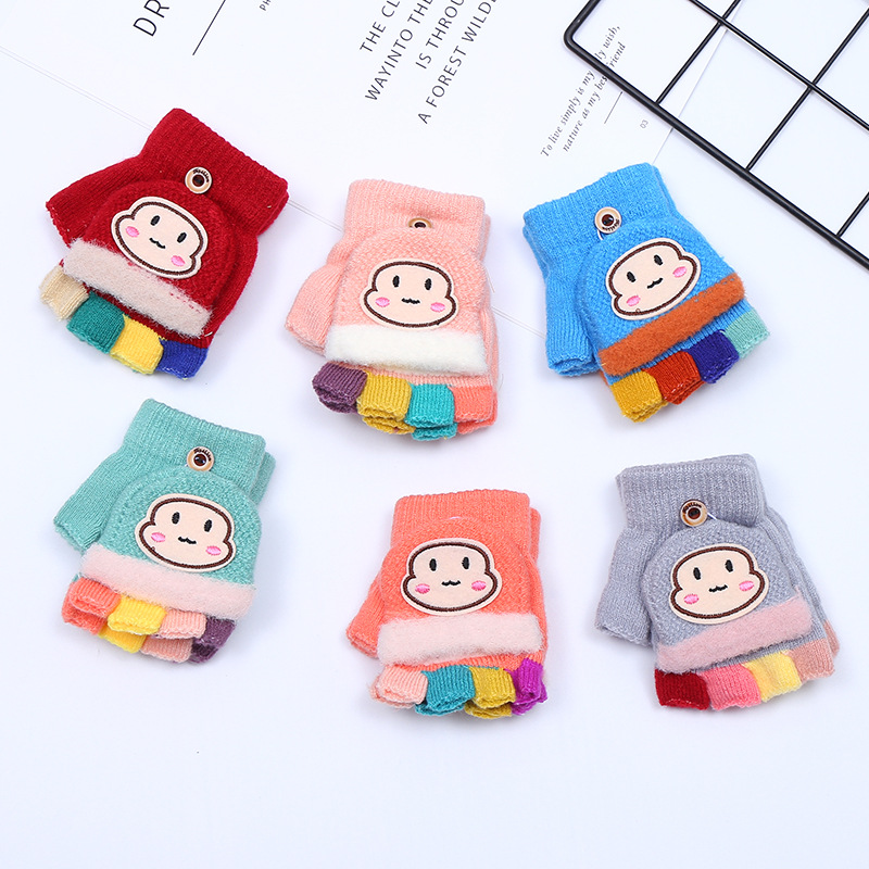 子供用手袋冬保温男女子供子供子供子供子供半分指フリップカバー赤ちゃんかわいい防寒半分厚いかわいい