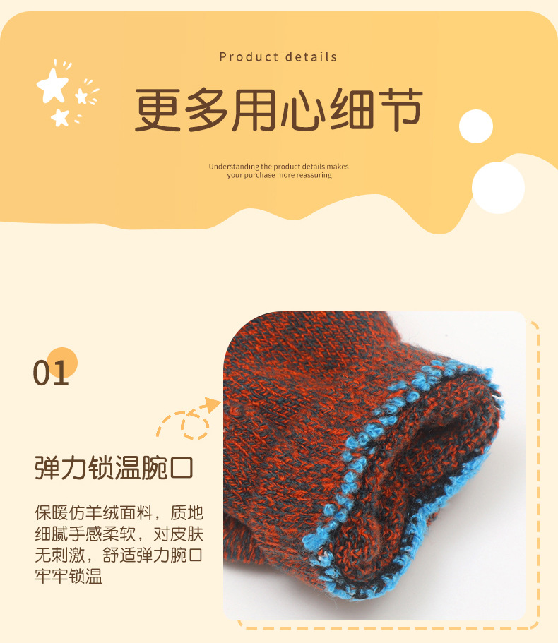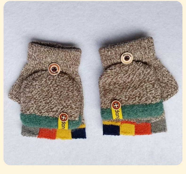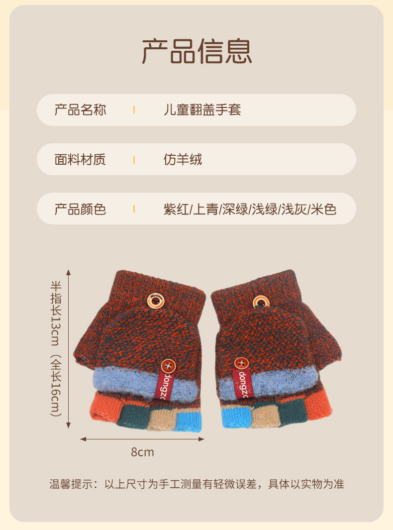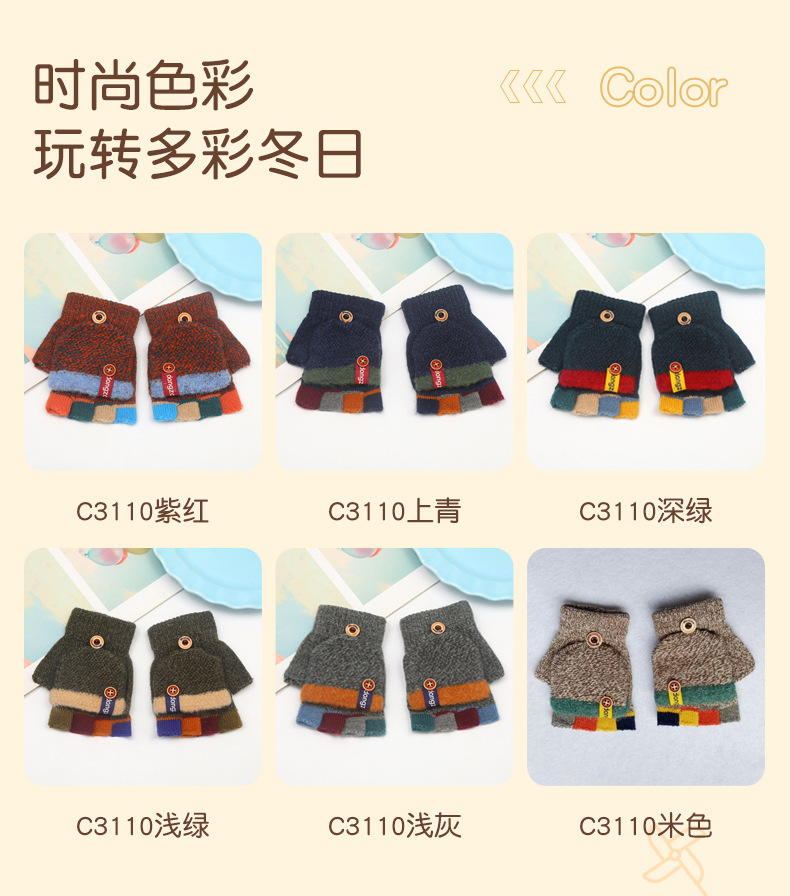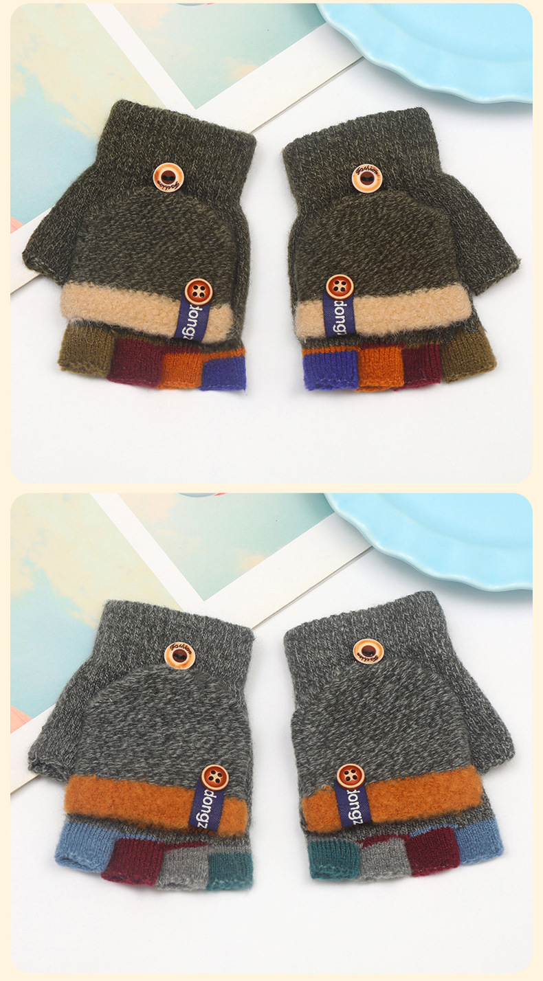 秋冬季儿童翻盖保暖手套婴儿可爱卡通半指防寒手套毛绒针织手套