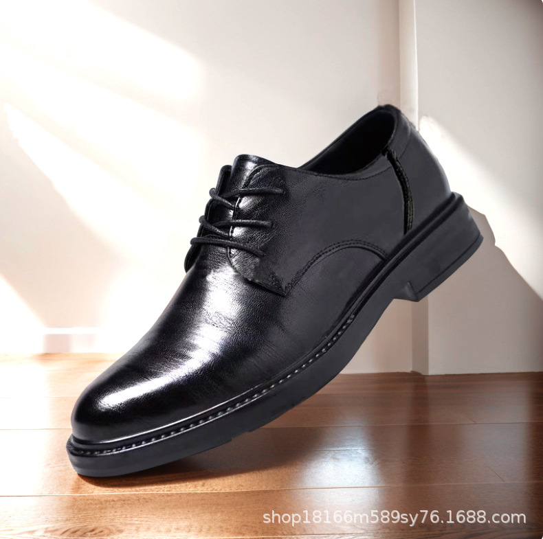 新款男士商务正装皮鞋真皮二层牛皮防滑耐磨系带橡胶底时尚百搭