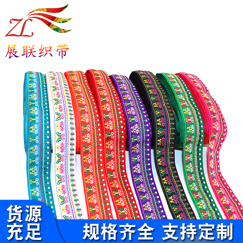 卸売り広西チワン族10mm民族特色リボン熱転写異国風情刺繍民族風リボン