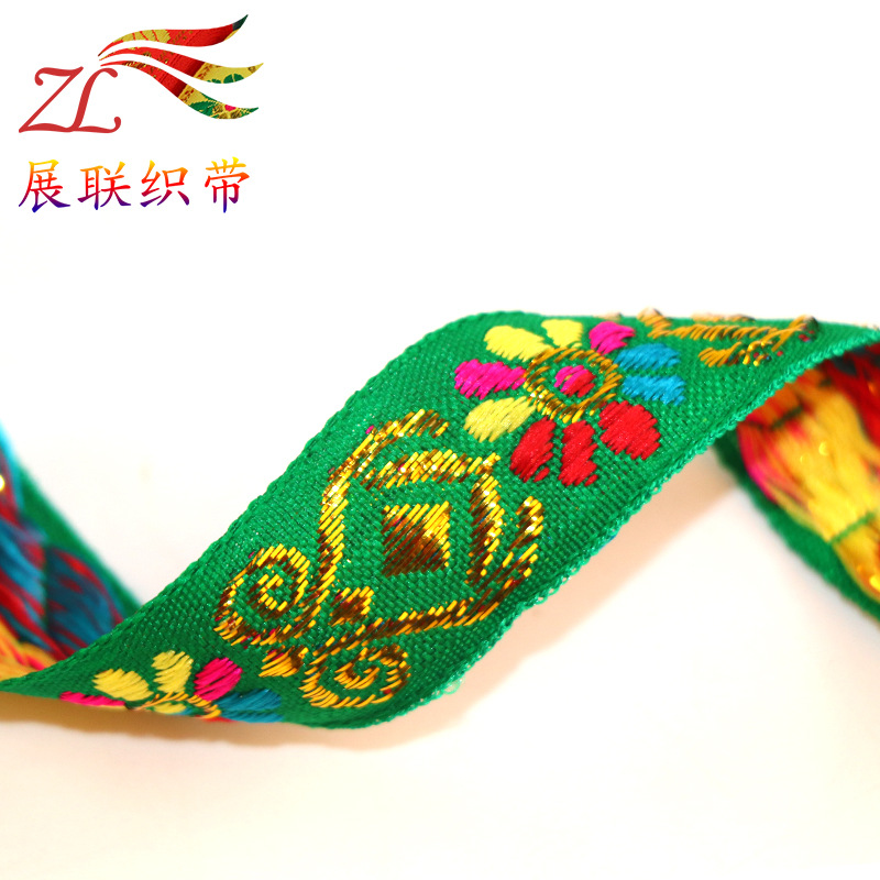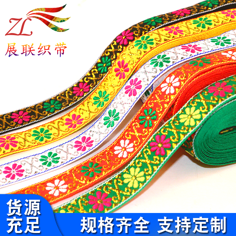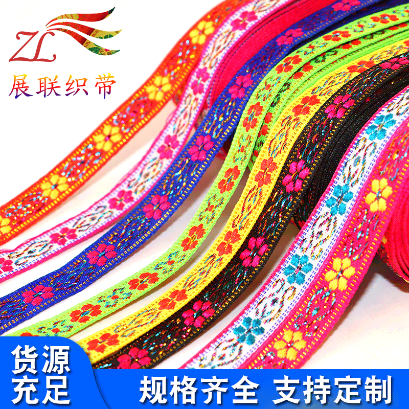 卸売り金銀糸ジャカードリボン民族風ジャカードリボン服装舞台家紡織抱枕装飾辺編み帯