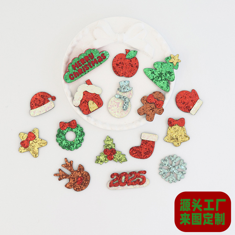 クリスマスシリーズdiy手作りアクセサリークリスマスギフトボックスクリスマス鹿クリスマスツリーサンタクロースパッチヘアアクセサリー材料