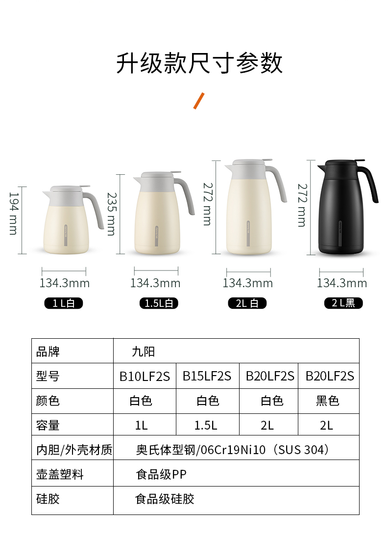 九陽WF502保温ポット316Lステンレス内胆家庭用保温ポット魔法瓶大容量2l