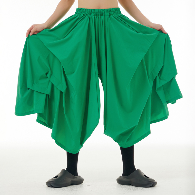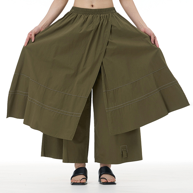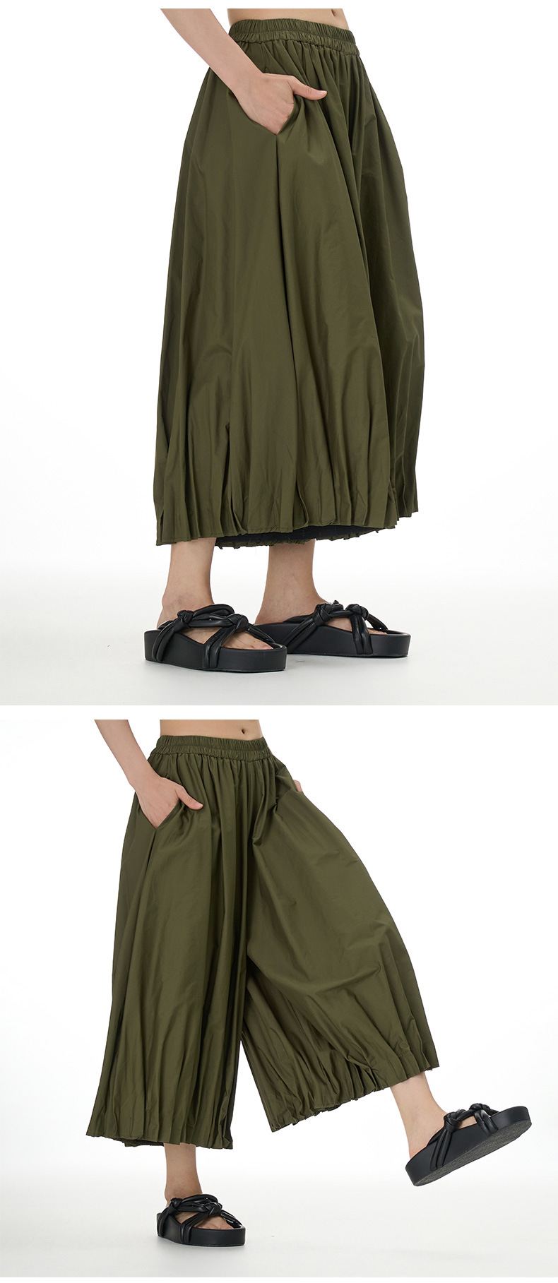体型カバーレイヤードキュロット2025春ハイウエスト着痩せドレープゆったり着痩せレディースクロップドパンツ66519