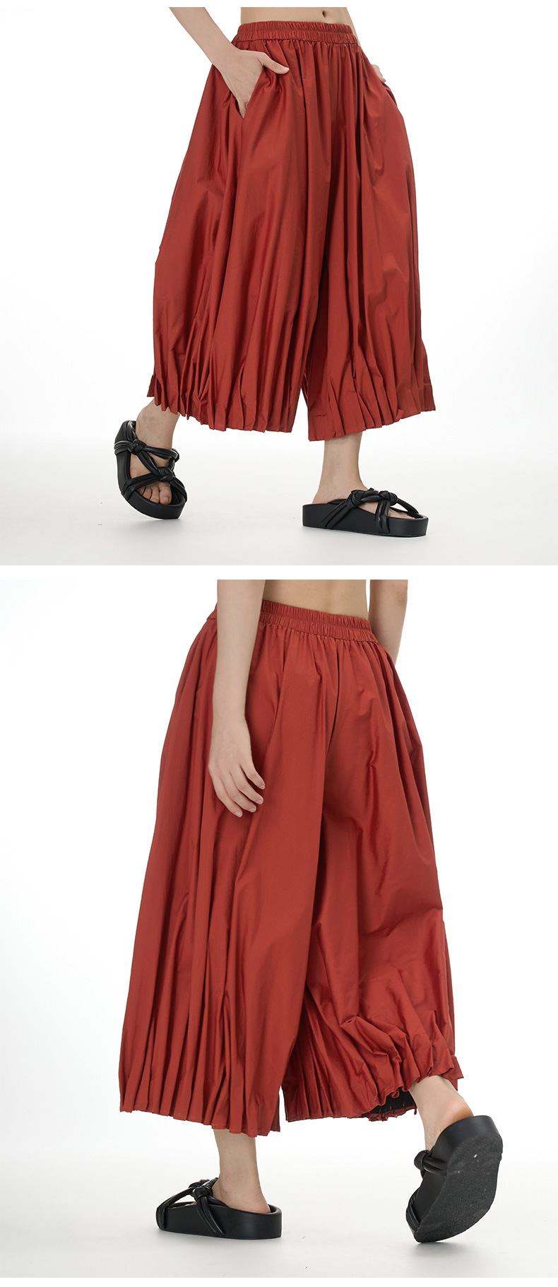 韓国風プリーツ七分丈パンツ2025秋新作大きいサイズゆったり着痩せレディーススカートパンツワイドパンツ1332