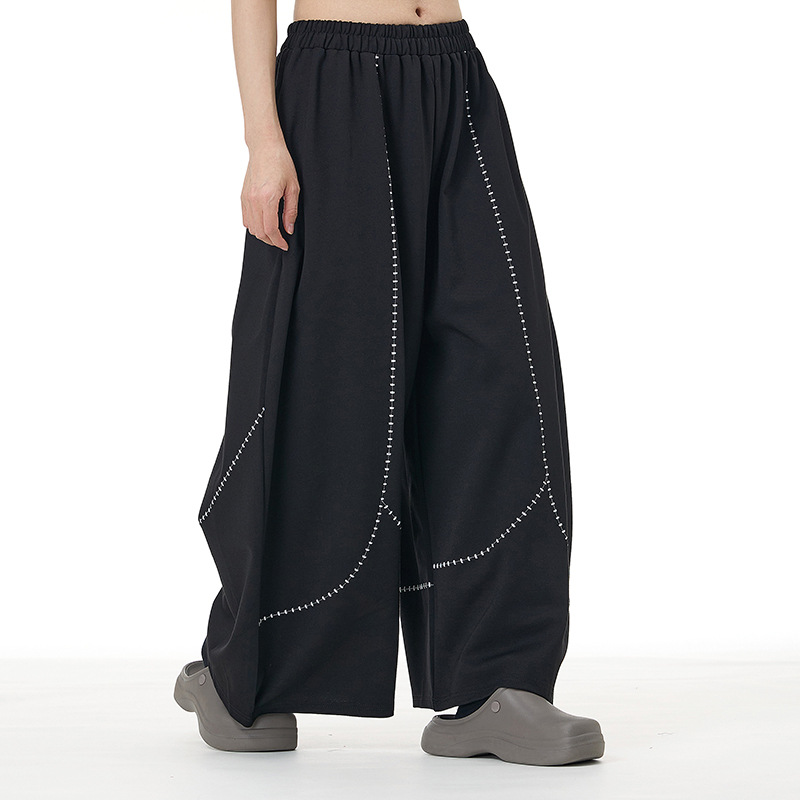 日系撞色弯刀裤阔腿裤2025秋冬新款大码女装宽松显瘦休闲裤80516