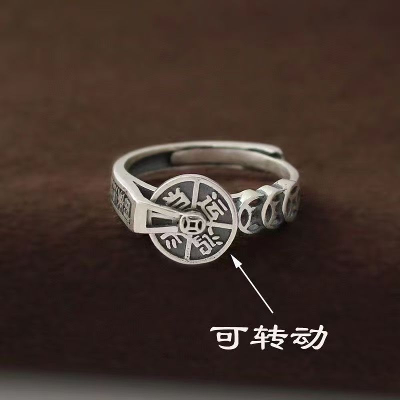 招财可旋转钱币鸿运当头金钱复古做旧戒指小众时来运转可转动指环